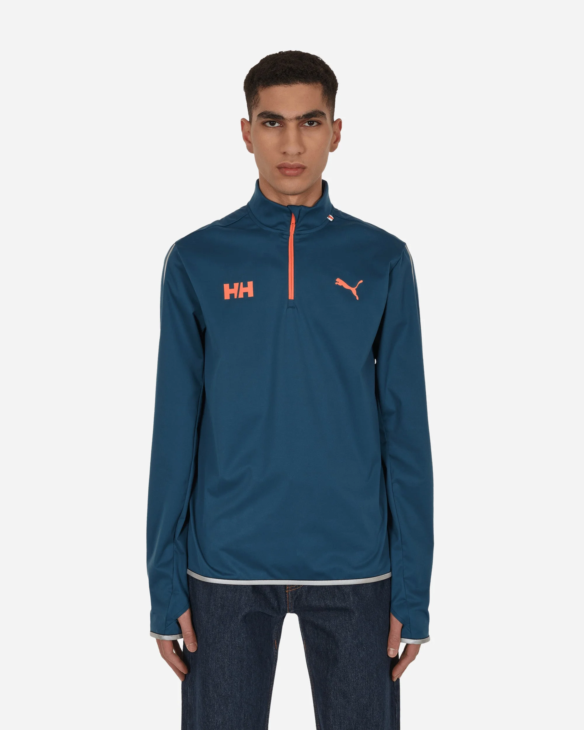 Puma x Helly Hansen Running Pullover Intense Blue - 100% Polyester - Water-Repellent Fabric - Stand-Up Collar - Half-Zip Closure - Logo Printed at Chest and Back - Reflective Details - Elastic Trims - Style Code: 521201-65 SIZE & FIT Model is 6ft 1in/1.86m with 35"/90cm chest and wears size M. Measures (Size M): 45cm Shoulders, 53cm Chest, 75cm Sleeve, 75cm Length, 53cm Hem.