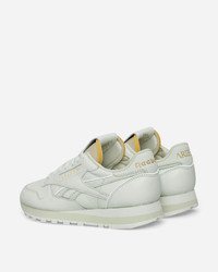Reebok x Aries Classic Leather Sneakers Aqua This limited edition Aries x Reebok Classic Leather are tinted with Aries’ signature aqua and stamped with gold. Featuring a vintage tongue with exposed foam and a message for magic-users on the inside. Paired with tonal Aries aqua laces and packaged in a unique custom shoe box with additional gold detailing. - Premium Leather Upper - Reflective Details - Woven Tongue Label - Embroidered Logo - Rubber Outsole - Style Code: RMIA004C99LEA001