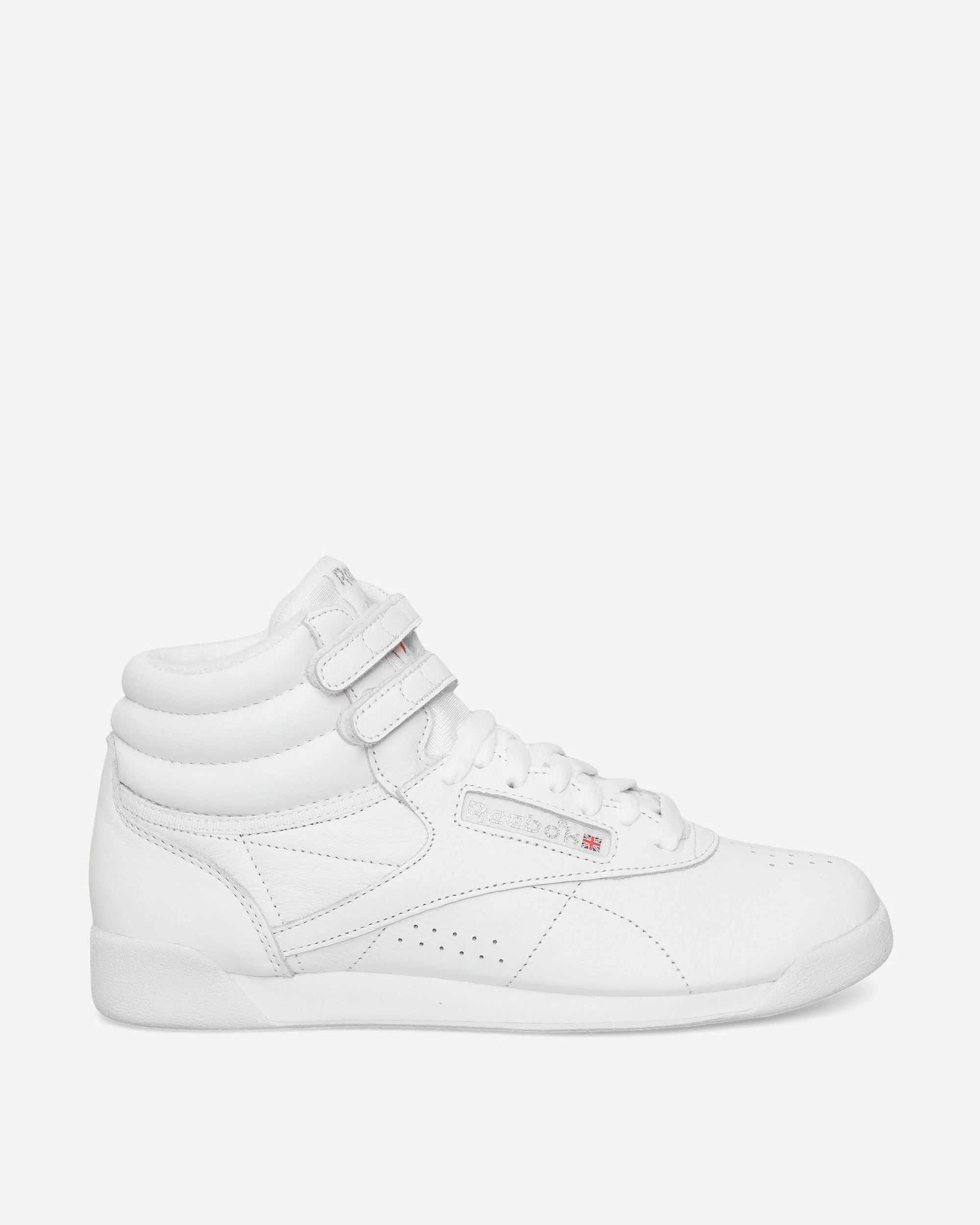 Reebok Freestyle Hi Sneakers Intense White / Silver A true icon of ‘80s fitness culture, the REEBOK Freestyle Hi blends heritage design with everyday comfort. Crafted with a soft leather upper and sponge lining, it delivers lightweight cushioning through an EVA midsole, foam insole, and a durable rubber outsole, finished with the unmistakable Union Jack logo. - Premium Leather Upper - Leather Lining - Lace Closure - EVA Midsole - High-Abrasion-Resistant Rubber Outsole - Style Code: 100000103 103