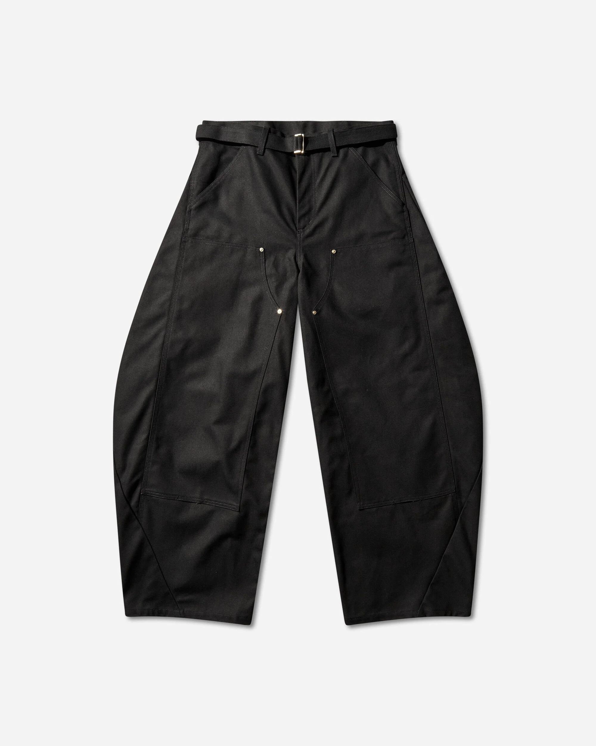 sacai x Carhartt WIP Duck Pants Black sacai and Carhartt WIP return for their fourth capsule collaboration. The sacai x Carhartt WIP Duck Pants combine the voluminous, pleated silhouette of sacai’s trousers with elements of Carhartt WIP’s Double-Knee Pant. The item is made from Carhartt WIP’s signature Dearborn Canvas, featuring double-layer knees, tool pockets, and a hammer loop, referencing Carhartt WIP’s Double-Knee Pant. - 100% Organic Cotton 'Dearborn' Canvas, 12 oz - Loose Fit - Adjustable Waist Belt - Button Closure - Zip-Fly - 7-Pocket Design - Hammer Loop - Reinforced Double-Layer Knees - Co-Branded Woven Square Label - Made in Japan - Style Code: 26-03992M 001