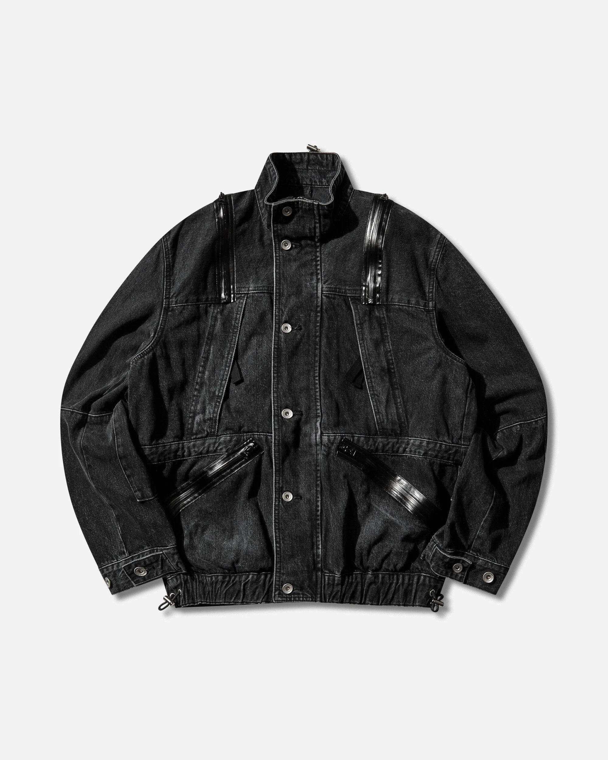 sacai Denim Blouson Black sacai's fashionable technical avant-garde is embodied in high-quality articles of contemporary design. This denim blouson features a stand-up drawstring collar, coated zip details, adjustable cuffs and a drawstring hem—crafted in Japan from pure cotton with a structured, utilitarian finish. - 100% Cotton - Denim Fabric - Stand-Up Drawstring Collar - Button Closure - Multiple Pockets at Front - Coated Zip Details - Adjustable Cuff - Drawstring Hem - Made in Japan - Style Code: 26-03927M 001