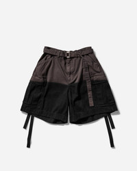 sacai Garment Dye Shorts Black sacai's fashionable technical avant-garde is embodied in high-quality articles of contemporary design. The Garment Dye Shorts bring a relaxed style, a faded two-tone effect and entirely Japanese production. - 100% Cotton - Garment Dyed - Loose Fit - Adjustable and Removable Belt - Silver Hardware with Logo - Button-Fly - Two Front Flap Pockets - Two Cargo Pockets with Drawstring Detail - Two Back Pockets - Made in Japan - Style Code: 25-03672M 001