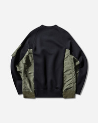 sacai Sponge Sweat x Nylon Twill Pullover Navy / Khaki From the sacai Classics collection, the Sponge Sweat x Nylon Twill is a hybrid sweatshirt made from nylon twill and the brand's Sponge Sweat cotton-blend jersey. - 62% Cotton, 38% Polyester - Sponge Sweat and Nylon Twill Fabric - Oversized Fit - Ribbed Crewneck, Cuffs and Hem - Utility Pocket at Sleeve - Two Side Pockets - Made in Japan - Style Code: SCM-326 212