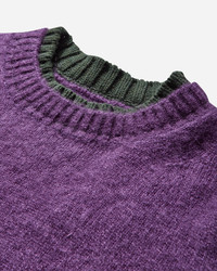 sacai Wool Knit Pullover Purple sacai's fashionable technical avant-garde is embodied in high-quality articles of contemporary design. This loose-fitted mohair-blend sweater features two-tone double collar, cuffs and hem and frayed edges. - 67% Mohair, 17% Nylon, 16% Wool - Loose Fit - Two-Tone Double Collar, Cuffs and Hem - Frayed Edges - Made in Japan - Style Code: 25-03840M 476
