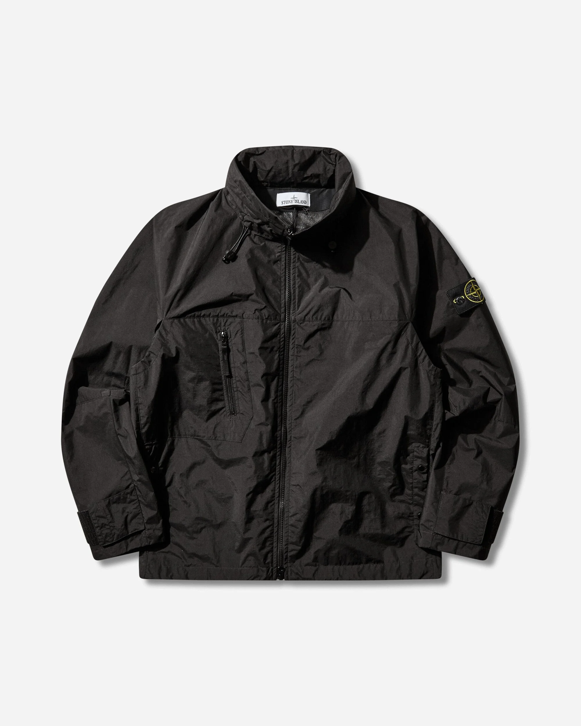 Stone Island Metal Lamina Poly Ripstop Jacket Black Stand collar jacket made from a recycled polyester micro ripstop, laminated on the inside with an aluminium film. The aluminium lamination lends structure to the polyester, enhancing the garment’s thermal insulation properties, and lends a slightly three-dimensional and textured appearance to the surface. - 100% Polyester - Membrane: 100% Aluminium - Coating: 100% Polyurethanic Resin - Water-Resistant and Windproof - Stand-Up Collar - Packable Hood - Two-Way Zip Closure - Ventilation Flaps - Zipped Chest Pocket - Two Side Pockets - Stone Island Badge at Sleeve - Adjustable Cuffs - Drawstring Hem - Style Code: L1S154100059S0354 V0029