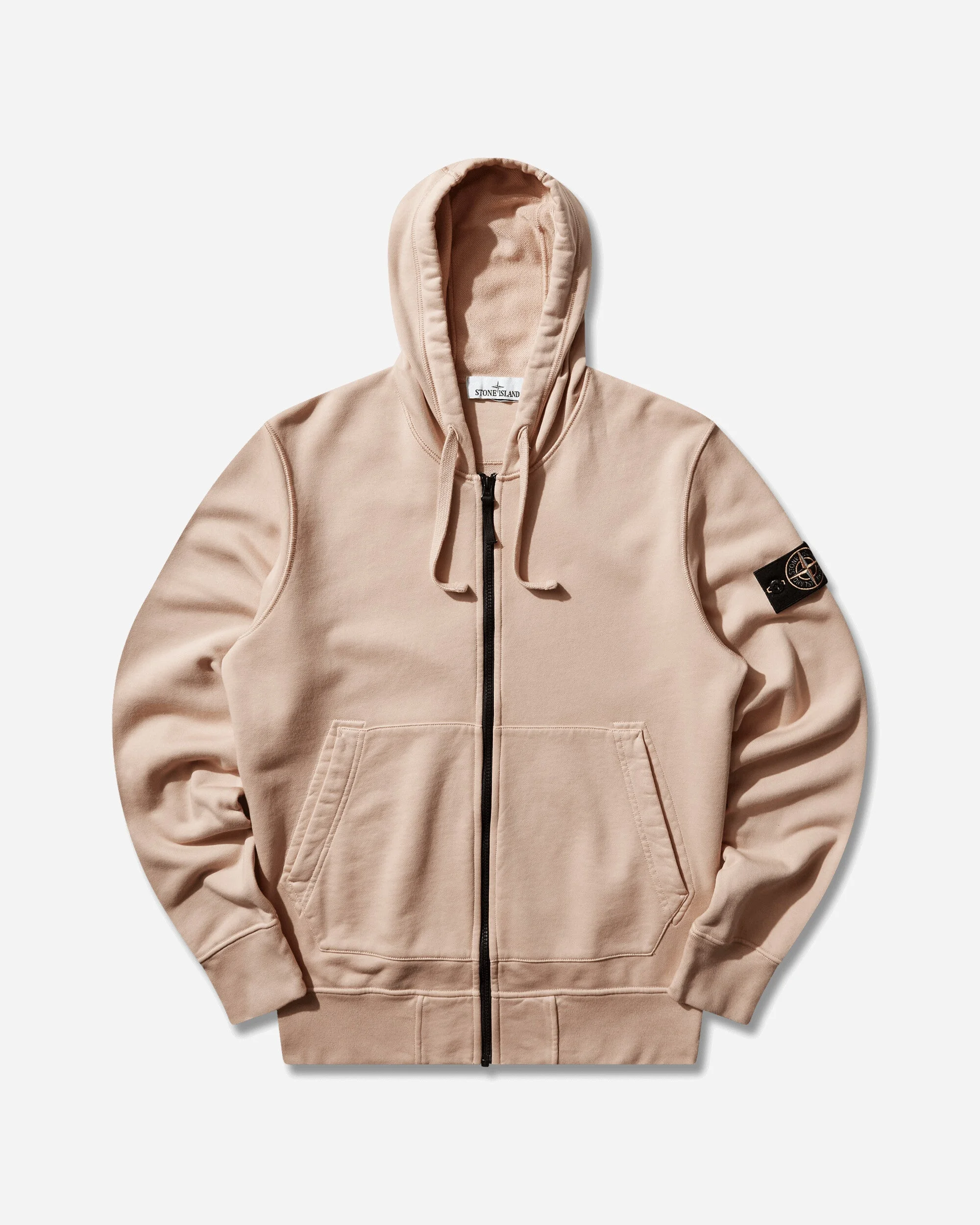 Stone Island Organic Cotton Fleece Zip Hoodie Chalk Pink Zip-up hooded sweatshirt in organic cotton fleece, featuring raglan sleeves, hand pockets, overlock seams, and ribbed trims. - 100% Cotton - Midweight Cotton Fleece - Garment Dyed - Regular Fit - Drawstring Hood with Snap-Button - Stone Island Badge at Sleeve - Ribbed Cuffs and Hem - Style Code: L1S156100061S0051 V008E