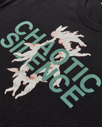 UNDERCOVER Chaotic Silence T-Shirt Black Named “INTERFACE” after the 1977 album by French elect-rock band Heldon, this menswear collection delivered fresh takes on some classic Undercover themes. Regular fit t-shirt with screen-printed graphic on the front. - 100% Cotton - Regular Fit - Ribbed Collar - Graphic Printed at Front - Made in Japan - Style Code: UC2E3802 BLACK