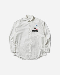 UNDERCOVER Patches Longsleeve Shirt White Continuing the concept introduced in Spring/Summer 2025, this collection adapts key design elements from UNDERCOVER’s main men's line into pieces made for everyday wear. Positioned between formal and casual, the collection strikes a refined balance—blending versatility with a distinct edge. Subtle references to Seditionaries run throughout, adding a layer of rebellious energy to otherwise classic silhouettes. - 100% Cotton - Regular Fit - Classic Collar - Button Closure - Chest Pocket - Statement Patches at Chest - Adjustable Cuffs - Curved Hem - Made in Japan - Style Code: UP2E4401 WHITE