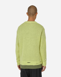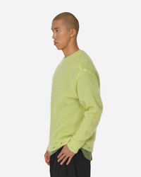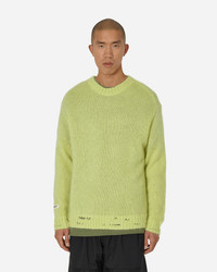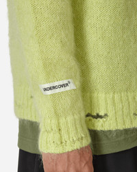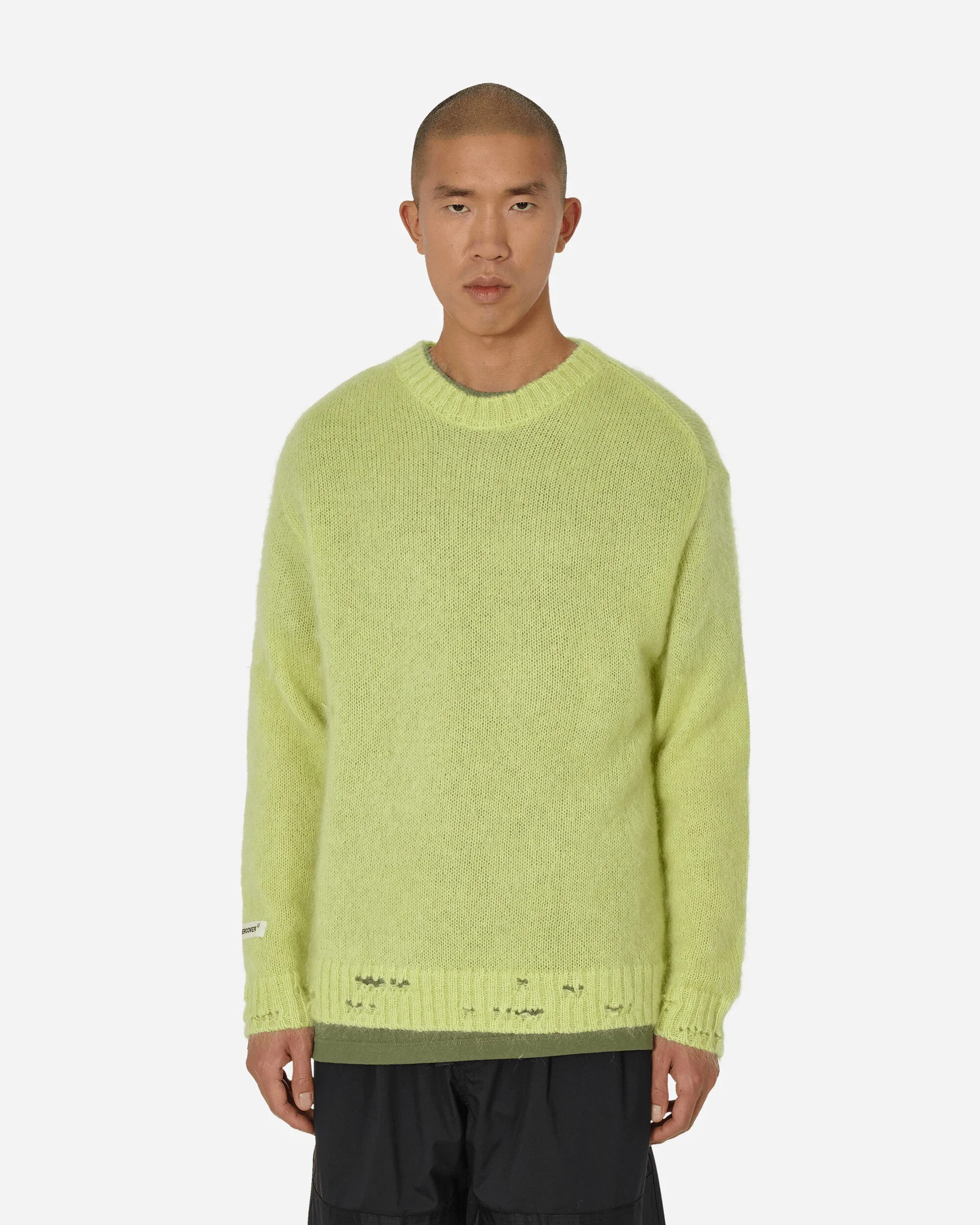 Undercover Mohair Crewneck Sweater Light Yellow - 55% Mohair, 30% Nylon, 15% Wool - Relaxed Fit - Ribbed Crewneck, Cuffs and Hem - Woven Logo Patch at Cuff - Distressed Details at Hem - Made in Japan - Style Code: UP2C4905 1 SIZE & FIT Model is 6ft 1in/1.84m with 39"/100cm chest and wears size 3. Measures (Size 3): 52cm Shoulders, 56cm Chest, 65cm Sleeve, 70cm Length, 52cm Hem.