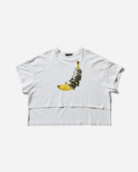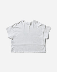 UNDERCOVER Cropped T-Shirt White From UNDERCOVER's latest woman collection, this cotton short wide t-shirt is made from heavyweight cotton and features a graphic printed at front. - 100% Cotton - Cropped Fit - Ribbed Collar and Hem - Graphic Printed at Front - Made in Japan - Style Code: UC1E1892-2 WHITE SIZE & FIT Size Body Shoulder Chest Sleeve 2 54.3cm 65cm 63.8cm 10.8cm 3 57.3cm 68.1cm 66.8cm 11.6cm