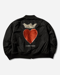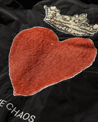 UNDERCOVER I Love Chaos Bomber Jacket Black The women's Fall / Winter '25 collection is inspired by the imaginative plush creations of French plush artist Anne Valerie Dupond and the style of Patti Smith. The design was developed through trial and error based on the idea of what it might be like if Patti Smith wore clothes reminiscent of handcrafted stuffed animals. - 100% Polyester - Filling: 100% Polyester - Loose Cropped Fit - Ribbed Collar, Cuffs and Hem - Zip Closure - Zip Sleeve Pocket - Two Side Pockets - Cotton Terry Heart Patch - Embroidered Text - Made in Japan - Style Code: UC2E82013 BLCK