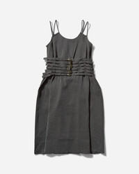 UNDERCOVER Silk Japanese Paper Camisole Dress Black Stripe Jun Takahashi again flexed his ability to masterfully combine distinct themes by “incorporating fetish-inspired designs into everyday wear that has a twist.” This silk japanese paper camisole dress features belt at the waist and front patch pockets. - 61% Silk, 39% Japanese Paper - Lining: 100% Cotton - Regular Fit - Stripe Pattern - Double Straps - Adjustable Belts at Front - Two Front Pockets - Made in Japan - Style Code: UC1E1704 BLACKST