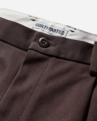WACKO MARIA Double Pleated Chino Trousers (Type-1) Burgundy The latest WACKO MARIA collection is the epitome of what it does best. The label leans into its versatility, offering up a wide range of outerwear pieces and WACKO MARIA’s endlessly evolving leopard-print signature. These pants are made from 100% cotton and features a double pleat on the front and WACKO MARIA label on the back. - 100% Cotton - Regular Fit - Straight Leg - Button Closure - Zip-Fly - Belt Loops - Double Pleats at Front and Back - Two Side Pockets - Two Back Pockets - Woven Logo Patch at Back - Made in Japan - Style Code: 25FW-WMP-PT01 BURGUNDY
