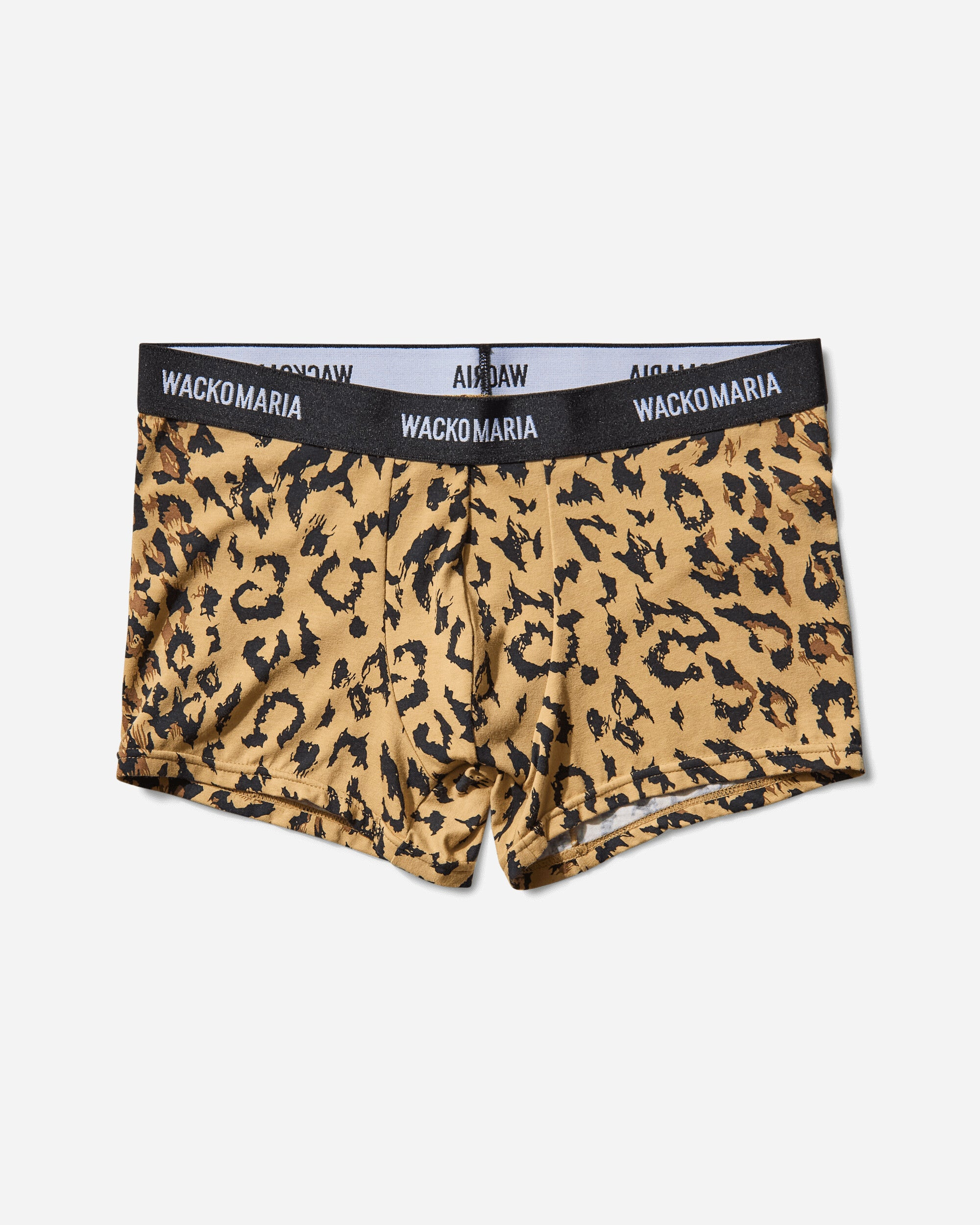 WACKO MARIA Leopard Boxer Briefs (Type-2) Beige Japanese Atsuhiko Mori, after retiring from the soccer J-league, was thinking about a new direction for his life. In 2005, founded WACKO MARIA as a high-end streetwear brand, influenced by music, movies, art, coffee shop, and Italian architecture. - 96% Cotton, 4% Polyurethane - Leopard Pattern - Elasticated Waistband - Made in Japan - Style Code: WMGP-BR12 BEIGE