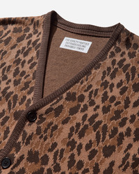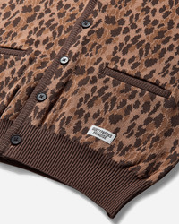 WACKO MARIA Leopard Jacquard Cardigan (Type-2) Brown Japanese Atsuhiko Mori, after retiring from the soccer J-league, was thinking about a new direction for his life. In 2005, founded WACKO MARIA as a high-end streetwear brand, influenced by music, movies, art, coffee shop, and Italian architecture. Made from cotton-jacquard fabric, this cardigan features a leopard pattern, button closure and two front pockets. - 100% Cotton - Regular Fit - Leopard Jacquard Pattern - V-Neck - Button Closure - Two Front Pockets - Woven Logo Patch at Bottom Hem - Ribbed Cuffs and Hem - Made in Japan - Style Code: 25SSE-WMK-KN06 BROWN