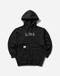 WTAPS Academy Hoodie Black This pullover hoodie is made of thick cotton fleece fabric and features a different print motifs placed on the front for each size. - 100% Cotton - Relaxed Fit - Drawstring Hood - Graphic Printed at Front - Kangaroo Pocket - Woven Logo Patch at Bottom Hem - Ribbed Cuffs and Hem - Made in Japan - Style Code: 242ATDT-CSM19 001