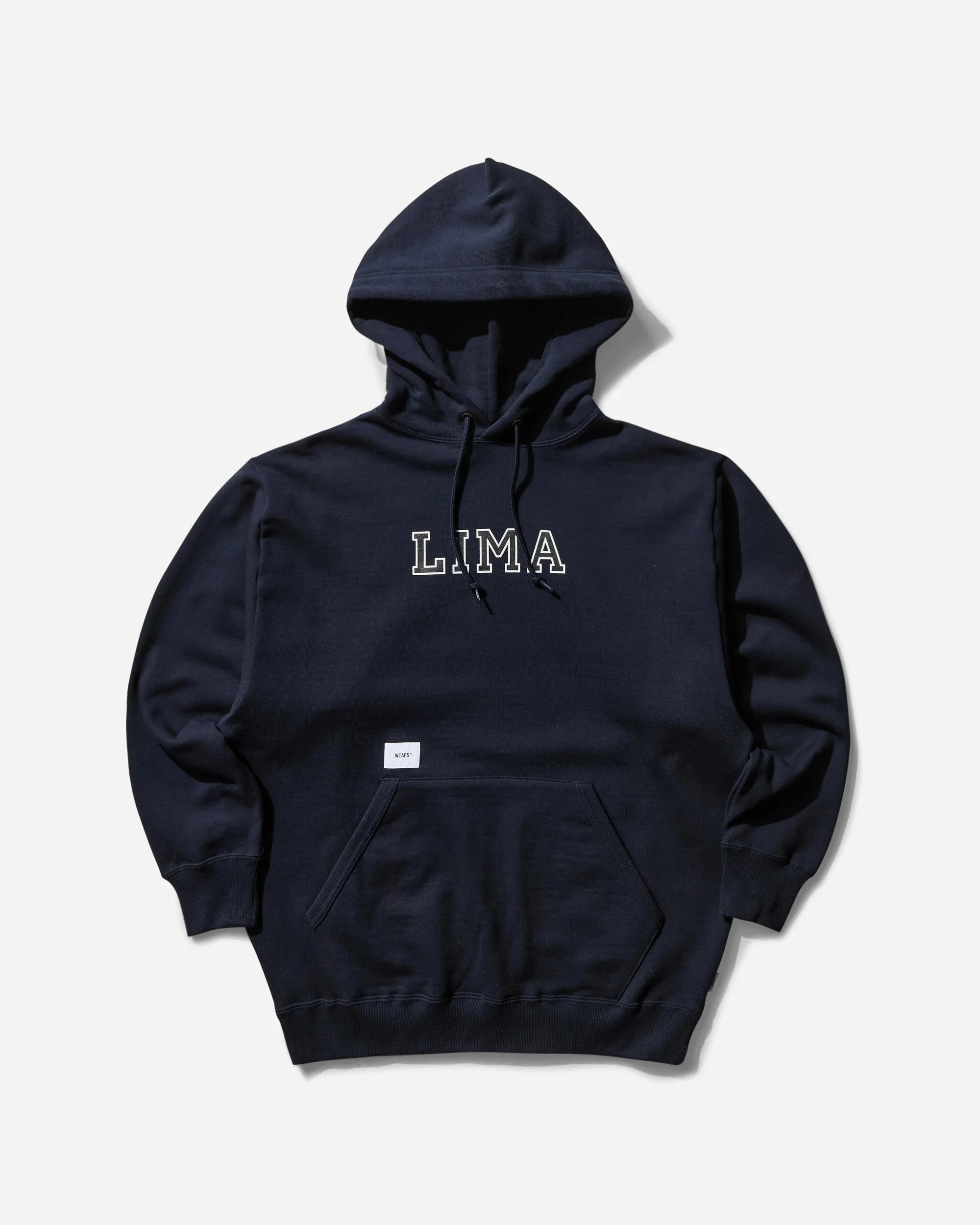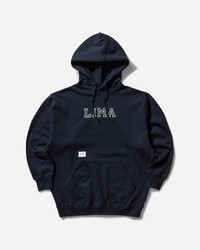 WTAPS Academy Hoodie Navy This pullover hoodie is made of thick cotton fleece fabric and features a different print motifs placed on the front for each size. - 100% Cotton - Relaxed Fit - Drawstring Hood - Graphic Printed at Front - Kangaroo Pocket - Woven Logo Patch at Bottom Hem - Ribbed Cuffs and Hem - Made in Japan - Style Code: 242ATDT-CSM19 002