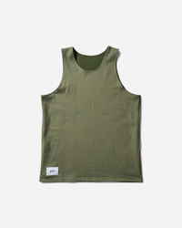 WTAPS Muddy Tank Top Olive Drab This reversible tank top is made from a blend of recycled wool yarn and recycled yarn scraps. It features a printed motif on the front and back. - 100% Cotton - Loose Fit - Reversible - Logo Printed at Chest and Back - Woven Logo Patch at Bottom Hem - Made in Japan - Style Code: 251ATDT-CSM31 OLIVEDRAB