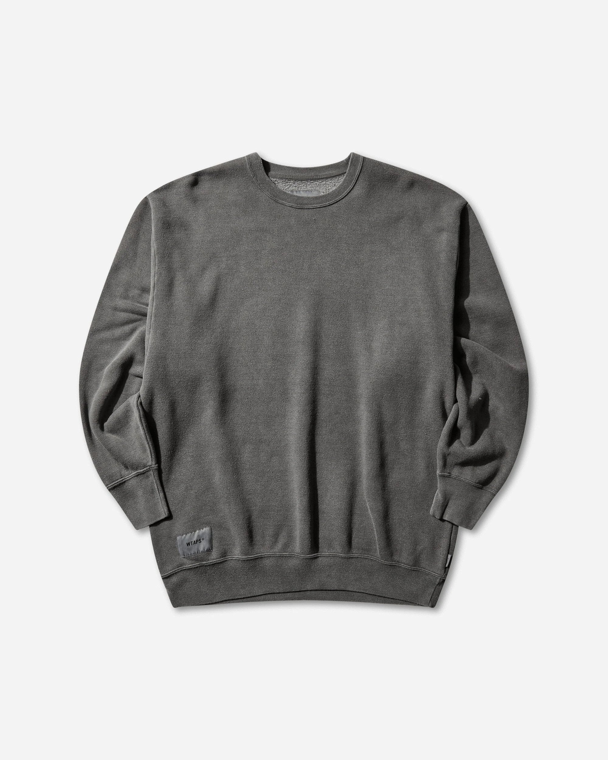 WTAPS SIGN-OD Crewneck Sweatshirt Charcoal This pigment-dyed sweatshirt is made from a brushed-back blend of cotton and recycled polyester. It features a relaxed silhouette with wide armholes. An embroidered motif is placed in the center of the back. - 50% Cotton, 50% Polyester - Pigment Dyed - Loose Fit - Ribbed Crewneck, Cuffs and Hem - Embroidered Logo at Back - Woven Logo Patch at Bottom Hem - Made in Japan - Style Code: 252ATDT-CSM03 CHARCOAL