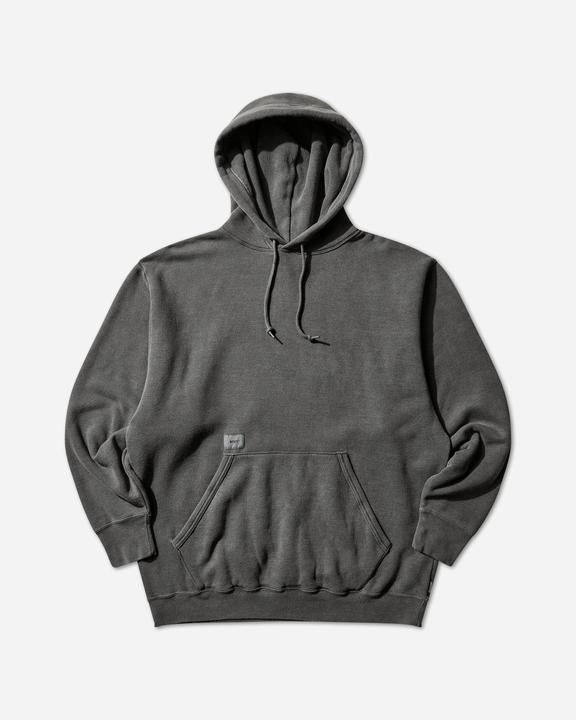 WTAPS SIGN-OD Hoodie Charcoal This pigment-dyed hoodie is made from a brushed-back blend of cotton and recycled polyester. It features a relaxed silhouette with wide armholes. An embroidered motif is placed in the center of the back. - 50% Cotton, 50% Polyester - Pigment Dyed - Loose Fit - Drawstring Hood - Kangaroo Pocket - Embroidered Logo at Back - Woven Logo Patch at Bottom Hem - Ribbed Cuffs and Hem - Made in Japan - Style Code: 252ATDT-CSM04 CHARCOAL