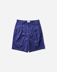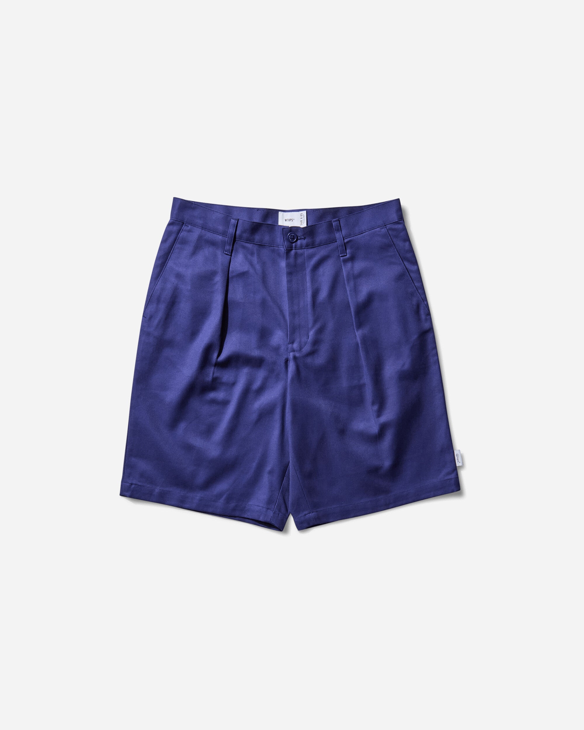 WTAPS WRKS2001 Shorts Blue These tuck shorts are made from vintage-like cotton twill fabric. Regular length, straight silhouette. - 100% Cotton - Straight, WIde Fit - Button Closure - Zip-Fly - Two Front Pleats - Two Side Pockets - Two Back Pockets - Woven Logo Patch - Made in Japan - Style Code: 251TQDT-PTM07 BLUE