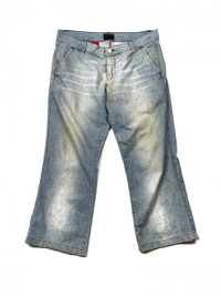 Waist : 18' (36') Inseam : 25' Outseam : 34' Front rise : 10' Thigh : 11.5' Leg Opening : 10' Good condition, wear mark, stain can be seen. Sewing a bit loose at the bottom crotch. Refer pic All measurements are approximate * Do not rely on tag size as pre-owned items may have been stretched or shrunk and vintage size do not directly translate the modern size. * The best way to ensure a correct fit is to compare our measurements with the measurements of a similar item that you know fits you well. * All measurements taken with garments flat on the floors. * Me using DHL Express (ETA 3 to 5 working days) worldwide. * Please do not expect the garment in mint condition unless stated, because vintage and used items may have sign of wear. * Feel free to ask me any question before purchasing. * Me accept PayPal only. Thanks for stopping by, stay safe! SKU 13