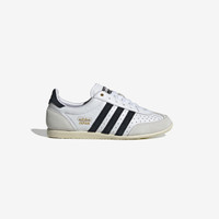 Originally introduced in the '60s, lacing up in the adidas Japan feels like wearing a true piece of history on your feet. Acting as a reissue of a 1964 trainer that appeared in a catalog for that year's global sporting event held in Japan, the adidas Japan has been revamped with a double-stitched T-toe to bring a fresh look and feel to an icon while retaining its original low-profile design. - adidas Japan - Regular fit - Lace closure - Tumbled perforated leather upper - Textile lining - Rubber outsole Article no: IH5489 Gender: Women Color: ftwr white/core black/gold met.