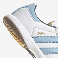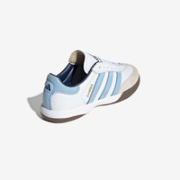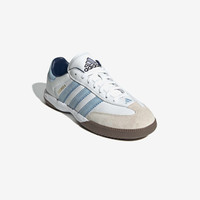 The legendary adidas Samba continues to show that greatness never stops evolving with its latest iteration, the adidas Samba MN. Keeping true to the now-vintage style, the adidas Samba MN taps into the magic with a leather and suede upper that's smoothly lined for comfort, complemented by bold gold-lettered Samba branding and serrated 3-Stripes to maintain the silhouette's nostalgic feel. Finally, a split rubber outsole delivers ground-ready traction with a torsion bar in the arch for an authentic sporty look and feel. - adidas Samba MN - Regular fit - Lace closure - Leather and suede upper - Synthetic lining - Torsion bar - EVA midsole - Rubber outsole Article no: JI3183 Gender: Unisex Color: ftwr white/clear sky/GUM5