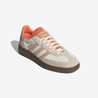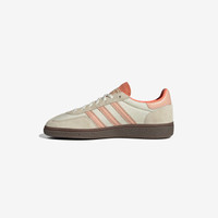Originally designed for indoor sport, the women's adidas Originals Handball Spezial returns in a brand-new "Cream White" colorway, effortlessly fusing its street-sporty design with fresh luxe detailing. Crafted in supple velvet that envelops the foot alongside plush suede accents, this edition of the adidas Handball Spezial maintains its nostalgic vibe with signature 3-Stripes logos on the sidewall, tongue label, and insole, while a retro gum rubber outsole rounds off the design, offering multidirectional traction for your daily explorations. - adidas Wmns Handball Spezial - Regular fit - Lace closure - Velvet upper with suede details - Synthetic lining - Rubber outsole Article no: JI2649 Gender: Women Color: cream white/powder coral/semi coral