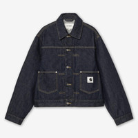 The Women's Belmar Jacket is cut from heavyweight cotton denim: thick, structured and made to soften beautifully over time. It starts crisp and breaks in naturally, ending up feeling like it's part of your everyday rotation. It carries that workwear influence without feeling heavy. Triple-stitched seams, bartack reinforcements and metal rivets at high-wear points keep it durable. Two chest pockets, two side pockets for practicality and the woven square label keeping it subtle but recognizable. Layer it over a hoodie, throw it on with tailored trousers or keep it simple with a tee and denim - whatever you choose, it always works. - Carhartt WIP Wmns Belmar Jacket - 100% cotton heavyweight denim - Unlined construction - Triple-stitched seams - Two side pockets Article no: I036595.0102 Gender: Women Color: Blue