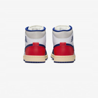 A true legend both on and off the court, the iconic Air Jordan 1 Mid arrives in a fresh "Rare Air" colorway, inspired by the original AJ1's design. Crafted with smooth leather from head to toe, this edition of the Air Jordan 1 Mid merges White, University Red, Neutral Grey, and Deep Royal Blue tones from top to bottom, complemented by signature Jumpman logos, atop a durable rubber sole. - Jordan Air Jordan 1 Mid - Leather upper - Padded collar - Lace closure - Perforated toe - Foam midsole - Rubber outsole Article no: DQ8426-102 Gender: Men Color: WHITE/DEEP ROYAL BLUE-UNIVERSITY RED