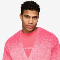 Gear up for the colder seasons and elevate your everyday style with this Air Jordan Cardigan. Crafted with a fuzzy knit fabric and an eye-catching gradient colour, this cardigan is detailed with a loose fit and slightly dropped shoulders for maximized comfort, while subtle Jordan branding rounds off the design. - Jordan Air Jordan Cardigan - 62% nylon/27% rayon/11% polyester - Loose fit - Slightly dropped shoulders - 5-button design - Hand wash - Imported Article no: FV7426-629 Gender: Men Color: ASTER PINK