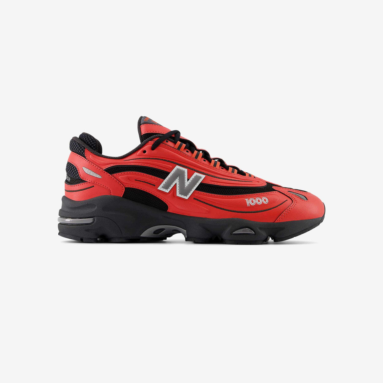 After making its long-awaited return from the archives last year, the New Balance 1000 steals the show once again with this brand-new "Blast Red" colorway. Equipped with its signature Y2K-inspired aesthetic, this edition of the NB 1000 combines a breathable mesh underlay with premium leather overlays, while distinct "N" and "1000" logos round off the eye-catching design. - New Balance 1000 - Mesh and leather upper - Sculpted midsole details - ABZORB cushioning - Stability Web rubber outsole Article no: M1000MSR Gender: Men Color: BLAST RED