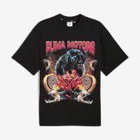 PUMA and A$AP Rocky reunite to bring motorsport energy into everyday wear with the Motors Tee. Featuring bold, racing-inspired graphics across the front, the design captures movement and intensity while staying true to the collaboration’s signature style. - PUMA Motors Tee x A$AP Rocky - 100% cotton jersey - Large motorsport-inspired graphic print on front - Crew neck and short sleeves - Relaxed fit for everyday comfort - Co-branded PUMA x A$AP Rocky details Article no: 636188-01 Gender: Men Color: PUMA BLACK