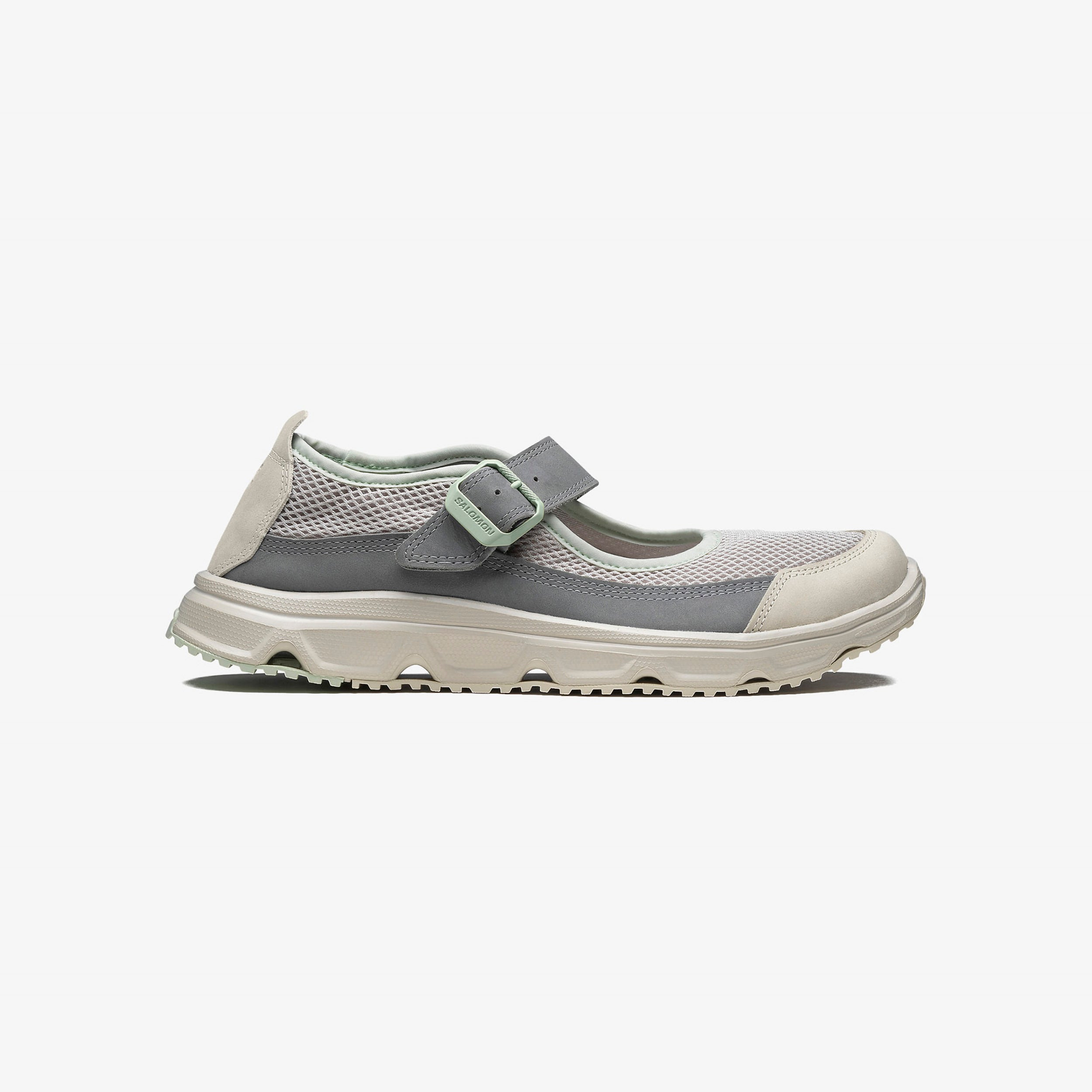 SALOMON continues to effortlessly balance comfort and style with its latest silhouette, the RX Marie-Jeanne, which reinterprets traditional fashion codes, merging them with technical recovery footwear. An absolute must-have in your summer rotation, the RX Marie-Jeanne combines a minimalistic monochrome design with technical, cosy and ultra-versatile details in true SALOMON style. - SALOMON RX Marie-Jeanne - 3D mesh upper - Leather overlays - Synthetic lining - Midfoot strap - Debossed branding - Lightweight EVA foam - Contagrip rubber outsole Article no: L47750400 Gender: Unisex Color: Ashes Of Roses/Monument/Rainy Day