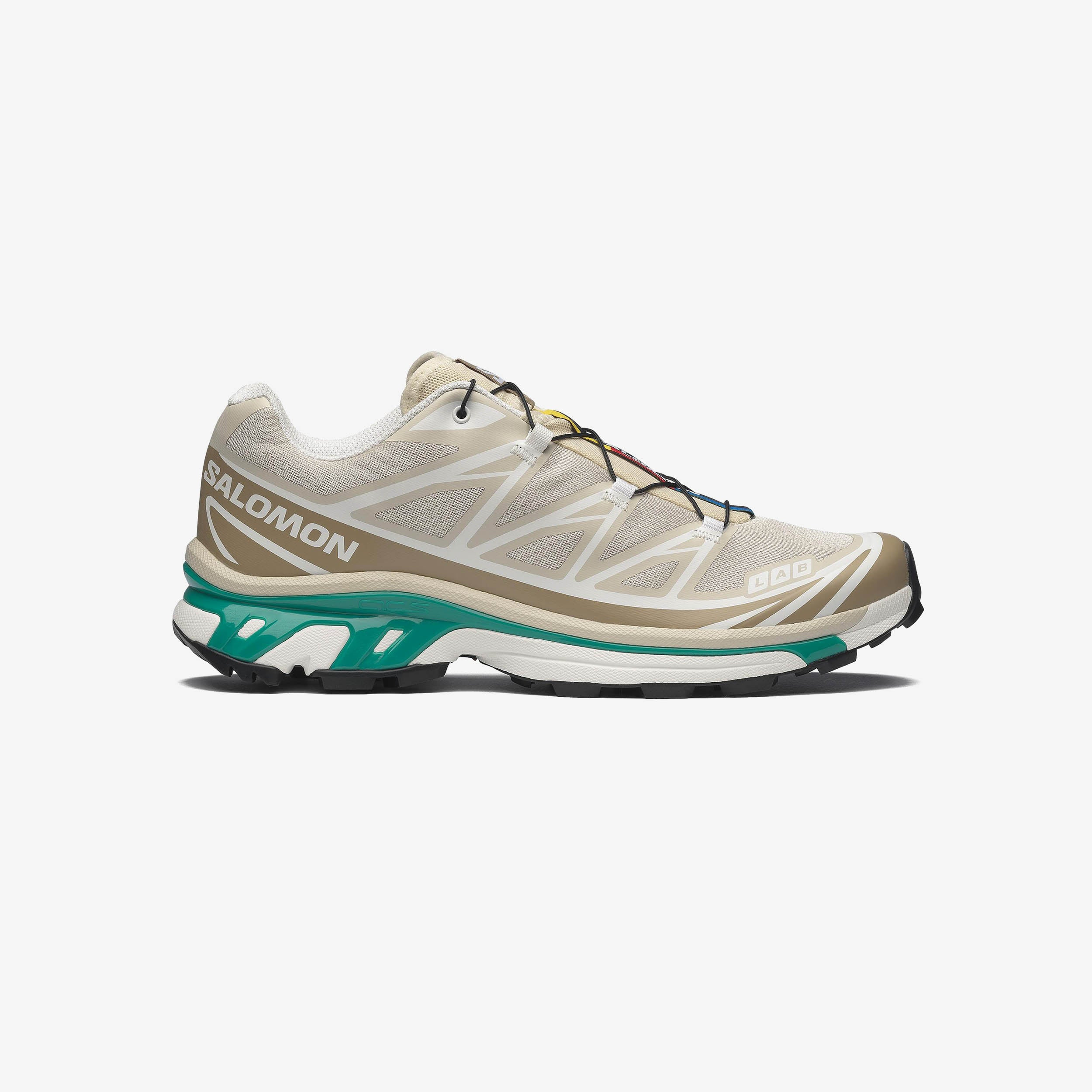 Equipped with a lightweight, streamlined mix of resistant TPU film and single-layer mesh, the SALOMON XT-6 offers a downhill chassis and lug geometry for more comfort and stability. Rounded off by a dual-density EVA cushioning with a protective toecap and a Quicklace® lacing system for one-pull tightening, allowing you to travel in style. - SALOMON XT-6 - Mesh upper - Quicklace® lacing system - Mesh and textile lining - SensiFit™ cradles the foot from the midsole to the lacing system - Abrasion-resistant TPU material - Agile Chassis™ System - EVA midsole - Rubber outsole Article no: L47864300 Gender: Unisex Color: Rainy Day/Chinchilla/Dynasty Green