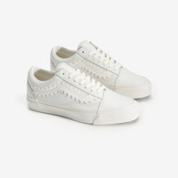 The Vans LX Old Skool Chou Chou reimagines the classic Old Skool silhouette with premium materials and meticulous craftsmanship. This edition features a full tumbled leather upper, offering both durability and a refined aesthetic. The lace-inspired embroidered sidestripe adds a unique textural detail, setting it apart from traditional designs. A soft padded collar enhances comfort, while the Sola Foam ADC insole provides all-day cushioning. The glossy higher sidewall and signature waffle outsole complete the look, blending heritage with modern style. - Vans LX Old Skool Chou Chou - Full tumbled leather upper - Lace-inspired embroidered sidestripe - Padded collar for extra comfort - Sola Foam ADC (All-Day Comfort) insole - Higher glossy sidewall - Signature waffle outsole for grip and traction Article no: VN000VB3CCZ Gender: Unisex Color: MARSHMALLOW