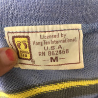Vtg 80’ HANG TEN SURFING Hawaii Striped Blue Tee Shirt Yellow Tag Made In USA Size : M Measurement : Pit to Pit : 17“ Front Length : 23“ Shoulder to shoulder: 15“ Sleeve Length : 7.5“ Shipping Worldwide with with tracking number. Any questions don’t hesitate to contact me. Thank you for your visit SS20220803