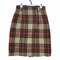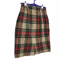 Japanese Brand - Vtg 90' GREEN EYE Nova Checks Plaid Midi Skirt Pencil