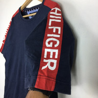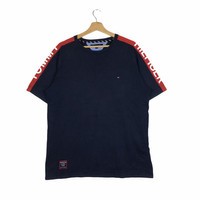 Tommy Hilfiger - Vtg TOMMY HILFIGER Spell Out Side Tap Blue Tee Shirt