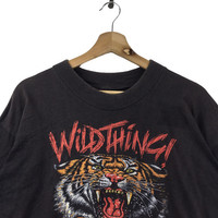 Vintage - Vtg WILD THINGS! TIGER Painting Modern Art Tee Shirt Cartoon