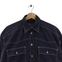 Vtg VERSACE JEANS COUTURE Medusa Button Casual Shirt Indigo