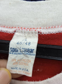 🤗Please leave me your phone number, as the shipping company always need the phone number to contact you once its arrive at your door. THIS IS USED CLOTHING!!! PLEASE DON'T EXPECTED IT TO BE LIKE NEW OR IN PRISTINE CONDITION!!! ************************************************************************************ Items Name : 🔥BIN/OFFER🔥 VTG 1980 RINGER/RAGLAN TSHIRT Tag : SPORTSWEAR Size XL Made in USA Measurements: Inches Width (armpit to armpit): 22" Length (shoulder to end of garment): 28" All measurements are taken with the garment flat on the ground. Condition: Good overall condition,( PLEASE ENLARGED THE PICTURES GIVEN ) Payment= accept "PAYPAL" only. SHIPPING VIA FEDEX/DHL ,ESTIMATED ARRIVE 3-10DAYS Please contact me for further questions. Thank you for viewing my listings. <<<<< PLEASE CHECK YOUR MEASUREMENT BEFORE BUY TO AVOID WRONG SIZE>>>>> =====THANKS FOR A GOOD DEAL=====