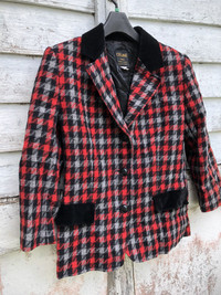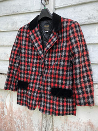 Celine Luxury Houndstooth Mohair Padded Shoulder Blazer