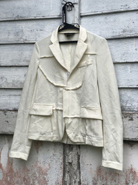 please read description below please compare your size with measurements given remember this is used item This product suit for ladies/woman size: XS brand : comme des garcon product: raw cut reverse jacket Care tag were cut condition: used but good payment via Paypal only thanks for your visit
