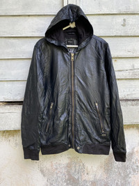 please read description below used item sold as it size: S brand: Diesel design: Zipper Hooded Leather Jacket material: sheepskin leather condition: have physical damages see pictures Paypal only for business thanks