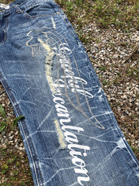 Nylaus Distressed Thunder Strike Wings Paint Lo Rise Jean