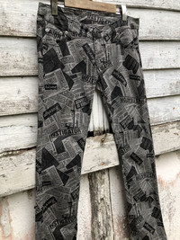 Unisex Avant Garde Newspaper Print Strecth Skinny Jean