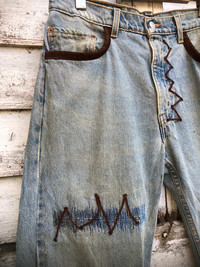 Levis Red Tab Kalimera Crafted Leather Trim Distressed Jean