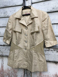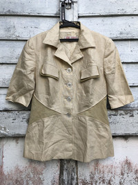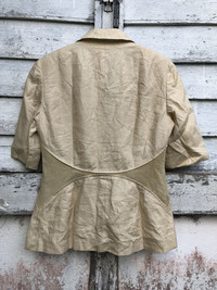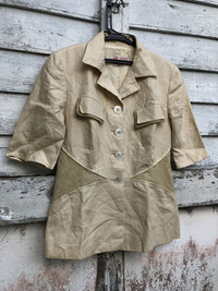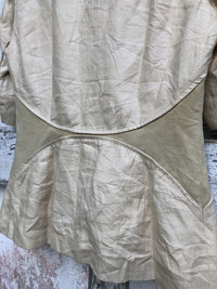please read description below please compare your size with measurements given remember this is used item size: 44 brand: Loewe product: Linen leather pathes jacket Highlights: Material linen Leather lining condition: used / see pictures payment via Paypal only thanks for your visit